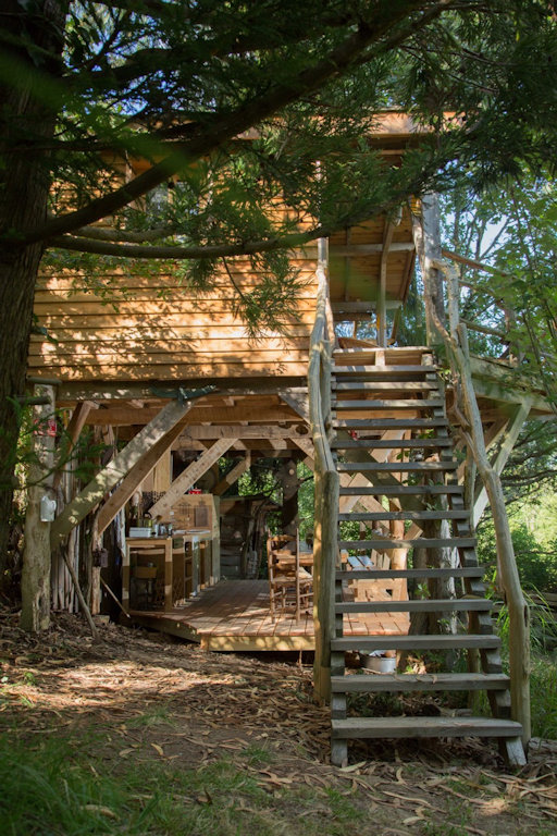 Sous la cabane, une cuisine d’été tout équipée vous permettra de préparer vos repas en toute autonomie. Et pour prolonger l’expérience, vous pourrez opter pour un bain nordique privé chauffé au feu de bois , véritable source de bien-être en pleine nature (service payant en option à 40€ ou 50€ avec peignoirs, utilisable de septembre à juin).